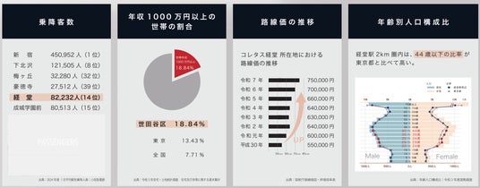 「経堂」駅の1日平均乗降客数は8.2万人。周辺には購買力の高い世帯や、44歳以下の若い住民も多く、ポテンシャルの高い街です。