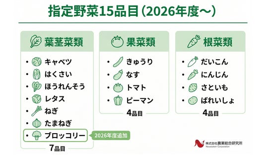 「持続可能な農産業を実現し、生活者を豊かにする」をビジョンに掲げ、全国の都市部を中心としたスーパーマーケットで「農家の直売所」を運営する株式会社農業総合研究所(本社:和歌山県和歌山市、代表取締役会長CEO:及川 智正、以下「当社」)は、2026年4月のブロッコリー「指定野菜」追加を受け、「農家の直売所」の出荷データを分析しました。