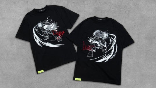 『Battle Canvas Series』は、EVO Japan 2026の開催にあわせて、イラストレーター・黒井ススムさんが描き下ろしたアートを使用したコレクションです。テーマは「対峙の瞬間」。前面にOutfit1(ストリートファイター 6)、背景にOutfit2(ストリートファイター 2)をまとったリュウと豪鬼が向かい合う構図は、格闘ゲームらしさを正面から捉えたアートです。EVO Japanの会場に満ちる、プレイヤーと観客が同じ熱を共有する空間―真剣だからこそ生まれる一体感を表現しました。