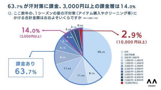 3. 6割以上が汗対策に課金。ひと夏に3,000円以上を費やす層も顕在化するなど、対策への課金が一般化。