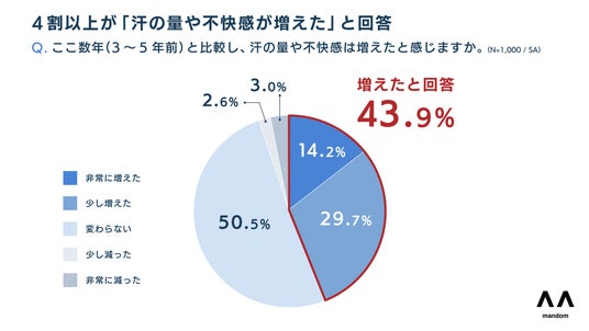 2. 4割以上がここ数年で「汗の量や不快感が増えた」と回答。猛暑の影響で「汗ストレス」が増加。