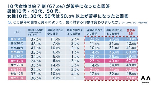3. 猛暑の影響で半数以上が「夏が苦手になった」と回答。「楽しむ夏」から「耐える夏」に変化。