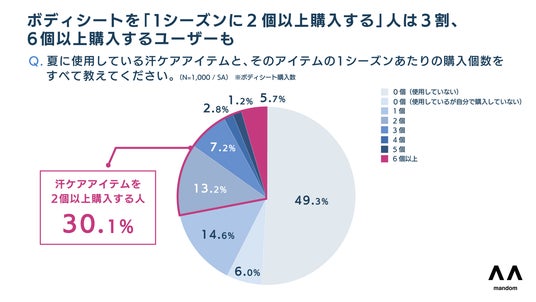 6. 夏の汗ケアアイテム第1位は「ボディシート」。3割が1シーズンに「2個以上」購入。
