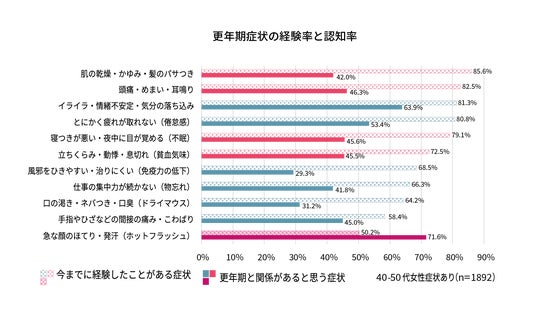 I.40~50代女性の7割が経験する「肌の乾燥・頭痛・不眠」、半数以上が更年期関連不調と認知されず。更年期のサインは身近な不調ほど見逃される