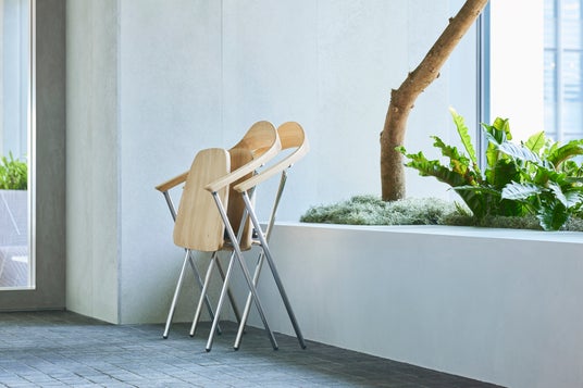 「クロッサ WOOD」は、ダイニングチェアのような美しいシルエットを備えながら、折りたたみ・自立・ネスティング収納を可能にした、ワークシーン向けの木製チェアです。