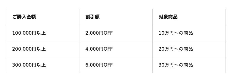 購入金額に応じて2,000円・4,000円・6,000円の3種類のクーポンを配布