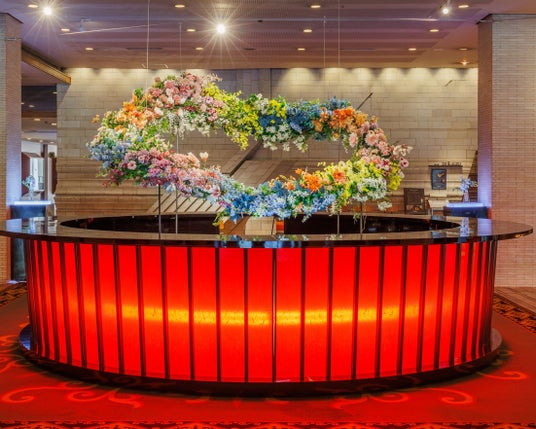 【テーマ】「澄みわたり、満ち、未来へ蒔く」をテーマに、春から初夏にかけての“整う→育つ→つなぐ”という時間の流れを演出します。澄みわたる空気とやわらかな光に包まれ、空間は清らかな彩りに満ちていきます。グリーンやピンク、ライトブルー、ライトイエローが織りなす繊細な色彩は、芽吹