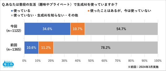 ・プライベートでの生成AIの使用率は10.6%から34.6%へと3倍超へ。