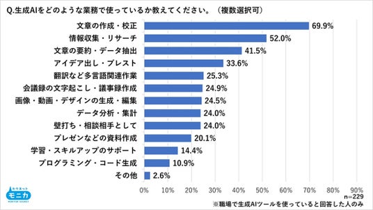 ・業務における生成AIの活用で、72.1%が作業効率向上と回答。