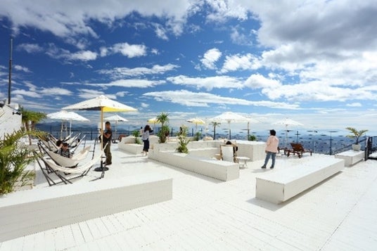 うさぎ平テラス屋上のビーチリゾート「Hakuba Mountain Beach」の開放感あふれるスカイデッキ。
