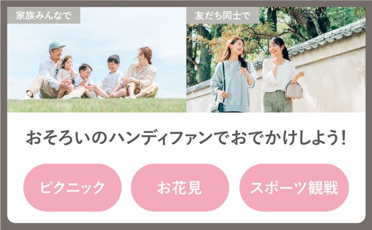 色とりどりのおそろいのハンディファンをおともに、ご家族やご友人と春のレジャーをお楽しみください。