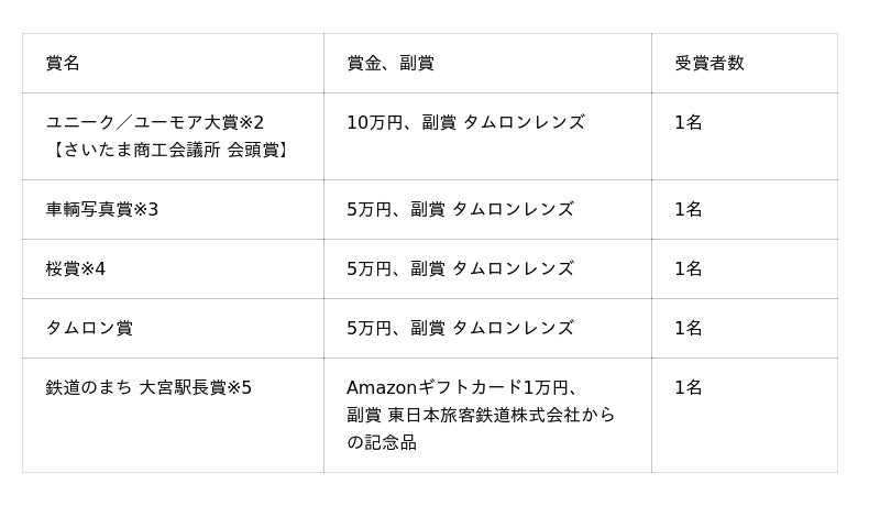 ※5)鉄道のまち 大宮駅長賞:JR大宮駅周辺で撮影された鉄道関連作品に対する賞。エントリー制、東日本旅客鉄道株式会社社員による最終審査