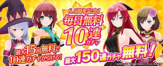 1) 最大150連無料!6.5周年記念1日1回無料10連ガチャ