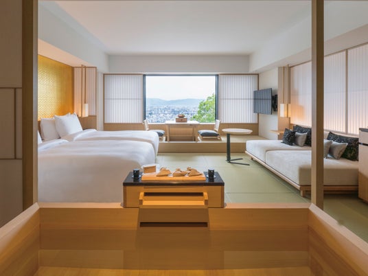 清水寺の隣に位置し、京都市街を見渡す東山の高台に佇む全52室の当ホテルは、山の竹林に抱かれ豊かな自然を有する聖域です。天然温泉を備え祇園の観光名所まで徒歩圏内と利便性が高いながらも、喧騒から離れた静寂の空間をご提供します。