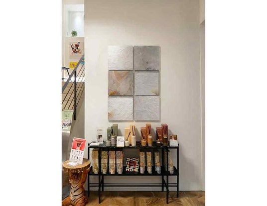 本物の石材をわずか数ミリに薄く加工し、裏面にマグネットを配した「ロック(石)マグネットスクウェア」は、賃貸住宅でも壁を傷つけず、誰でも瞬時に重厚感のある空間を作り出す。今回の展示販売では、LIVING HOUSE.の洗練された家具とのコーディネートを通じて、エンドユーザーの皆様に「これまでにない壁面装飾の自由度」をリアルに体感していただけます。