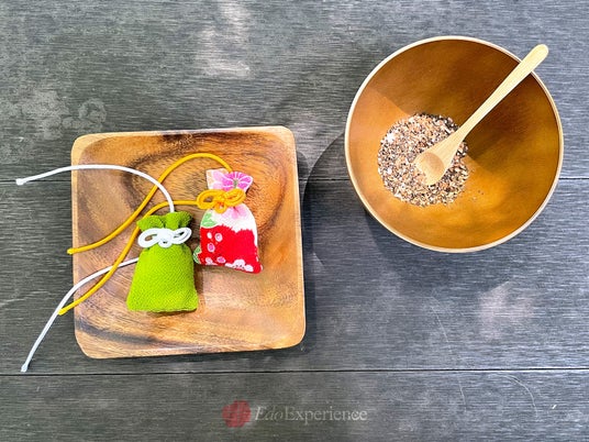 JAPANESE SCENTED SACHET MAKING日本の伝統的な香り文化を体験し、自分だけの匂い袋を作るワークショップです。400年以上の歴史をもつ老舗香舗の天然香原料を使用し、香りを調合します。使用するお香は"福徳神社"にも奉納されています。