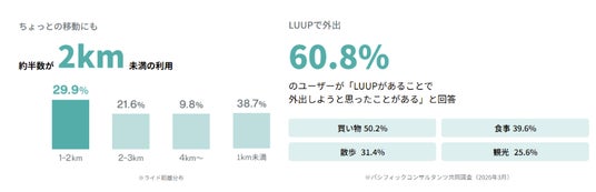 サービス提供開始から6周年を記念し、特設サイトを公開します。本サイトでは、LUUPが日常の交通手段として定着していることを示すデータを紹介しています。「2km未満のライドが約半数」「外出のきっかけになったユーザーが60.8%」に上るというデータから、その実態をご覧いただけます。