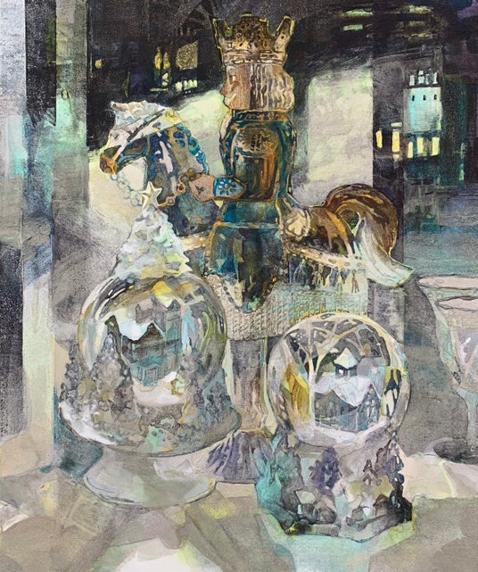 『夜雪の行進』2024年 膠・麻紙・岩絵具、銀