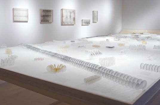 本展では音や言葉といった不可視の現象を、線や形態として空間に表現します。日常生活の音や会話を起点に、一定の手続きを通しながら記述方法を探り、知覚の時点では現れない要素の視覚化を試みます。 作品は立体、平面、ブック形式を含む空間として構成します。