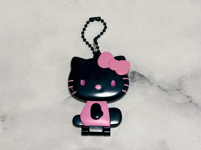 こちらは、前項でも触れたブラックカラーのボディのキティちゃん。目、鼻、ひげはピンクで描かれていて、とにかくおしゃれ!ボールチェーンもブラックで統一されており、全体に高級感があります。