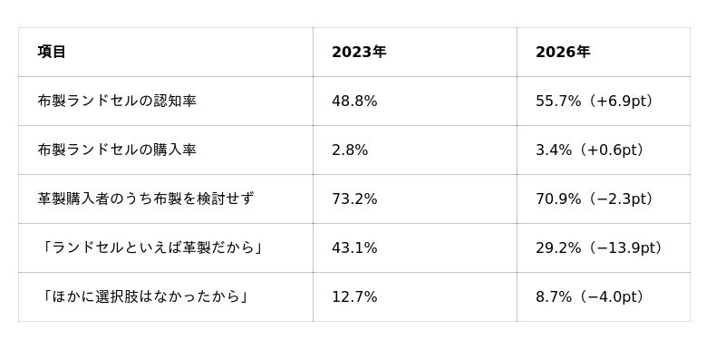 布製ランドセルの認知、初めて過半数へ「革製が当たり前」意識は2年で14pt減少、ランドセル選びの意識に変化の兆し