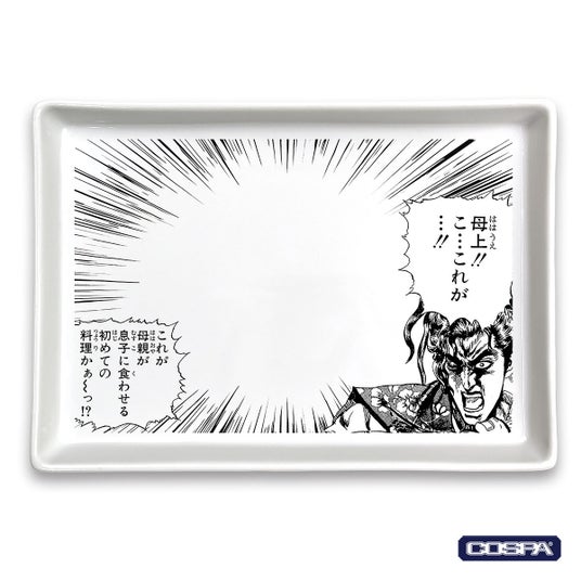 そして、伊達政宗が膳についた際の一コマ「母上!!こ…これが…!!これが母親が息子に食わせる初めての料理かぁ~!?」が皿になって登場。実際に料理を乗せることで完成する面白いお皿です。数寄者(すきしゃ)には堪らない逸品となっています。