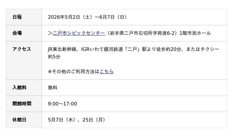 一般財団法人日本品質保証機構(東京都千代田区、理事長:石井 裕晶、略称:JQA)と国際認証機関ネットワーク(スイス・ジュネーブ、略称:IQNET)が主催する「JQA地球環境世界児童画コンテスト」の優秀作品展を、2026年5月2日(土)~6月7日(日)まで「二戸市シビックセンター」で開催します。