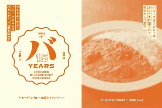 看板商品・バターチキンカレーはおかげさまで15周年