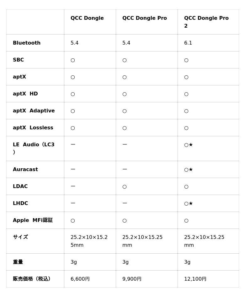 ★ QCC Dongle Pro 2の新機能