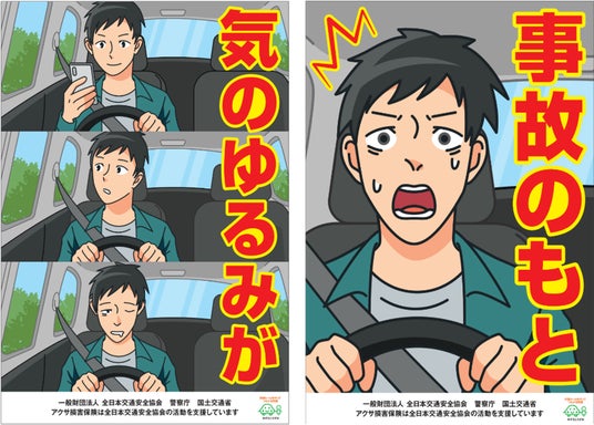 「チェンジングポスター」による交通安全啓発活動は、全日本交通安全協会にとって初の試みとなります。第一弾のテーマは「気のゆるみが事故のもと」です。このポスターは、見る角度によってドライバーの表情が「気のゆるんだ状態」から「事故寸前の切迫した状態」へと変化する視覚的な仕掛けが特徴です。これにより、スマートフォン操作や眠気など、誰もが陥りやすい運転中の油断が、いかに危険な状況に直結するかを強く訴えかけます。