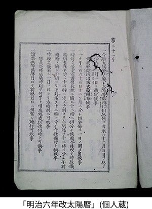 本展では、1783(明治6)年に実施された太陽暦への改暦の内容を伝えた冊子「明治六年改太陽暦」をはじめ、時の流れに関する書物を展示します。