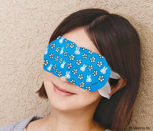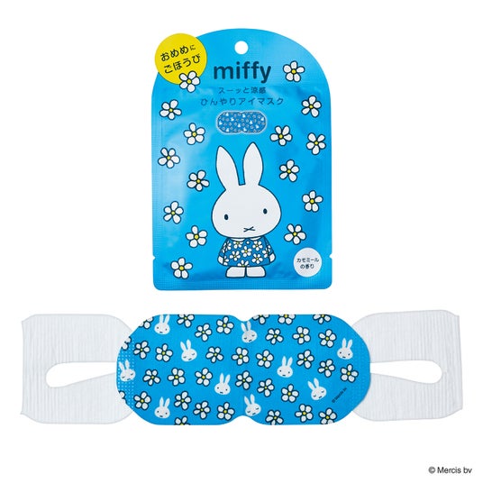 ミッフィーと花の総柄が目を引くアイマスクで、PCやスマホを使いすぎた時や仕事の合間に、やさしい冷涼感と共にリラックスタイムを。