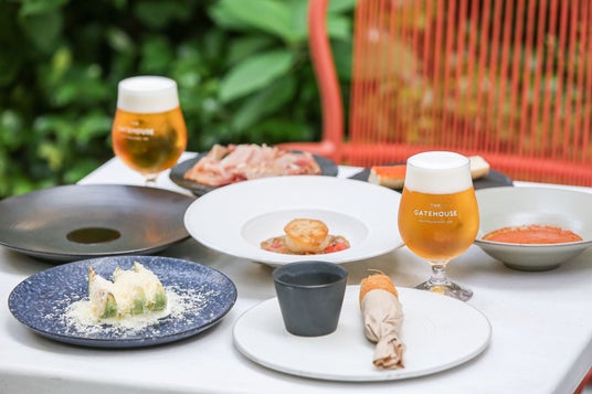 開放的なテラスでは「ビアテラスプラン」を展開。フライドポテトやシャルキュトリー、パテ・ド・カンパーニュに加え、メインのローストポークを用意し、都会の中でゆったりとしたひとときを提供します。