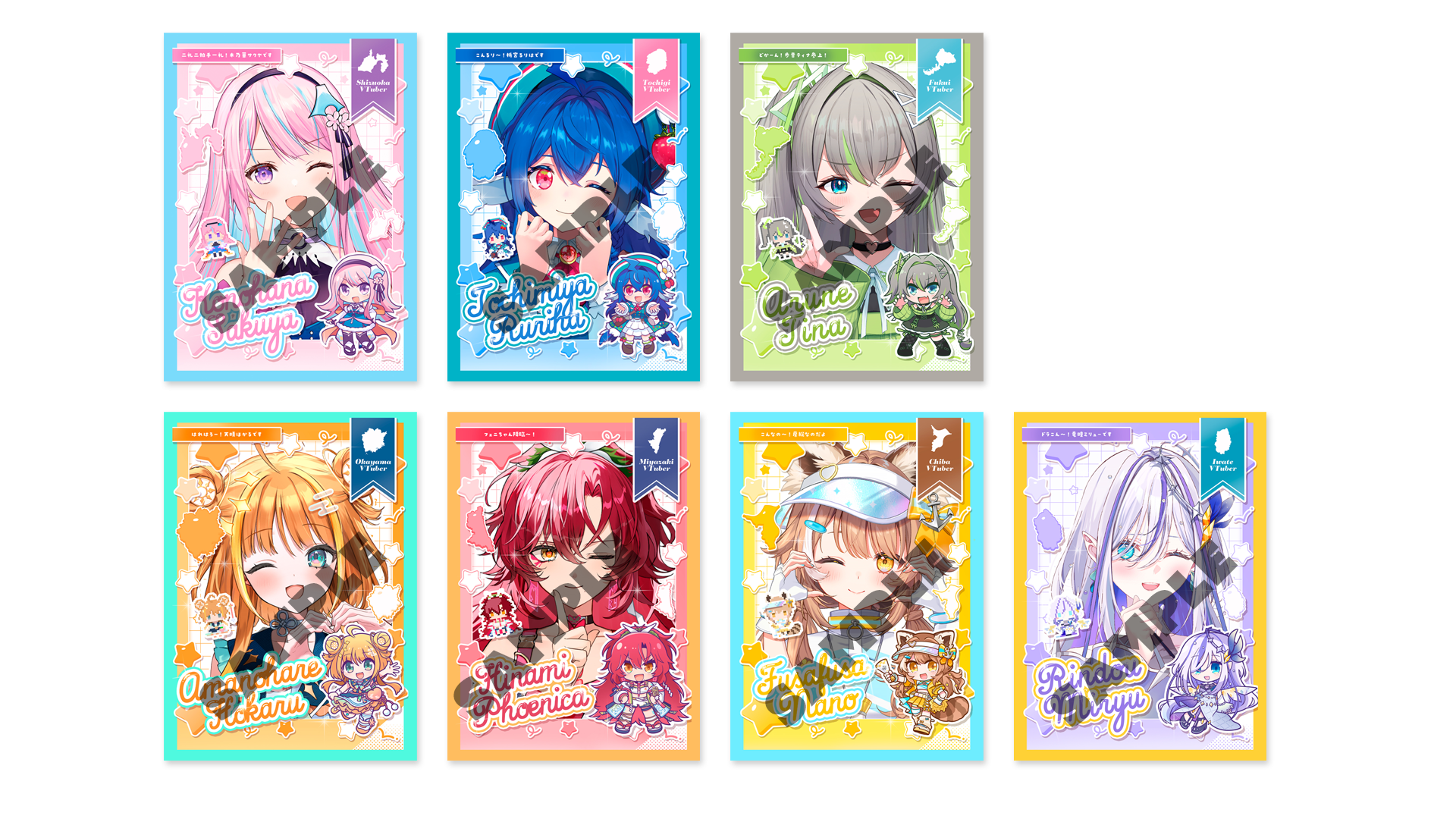 ラインナップはデビューしたばかりの「チバテレ公認VTuber 房総なの」と、「岩手めんこいテレビ公認VTuber 竜瞳ミリュー」も加えた全7種類!