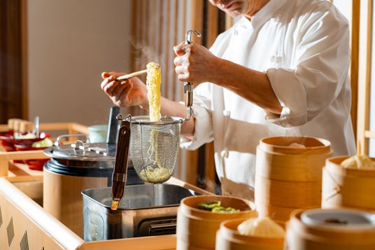 朝食はビュッフェスタイルを一新し、「医食同源」をテーマにした中華メニューをご提供します。複数種類から選べる手づくり飲茶をはじめ、自分好みにアレンジできる中華がゆコーナーや、中華麺等をその場で提供するライブキッチンなど、朝から体にやさしい味わいとともに、多彩な中華メニューを楽しめる満足感のある内容となっています。