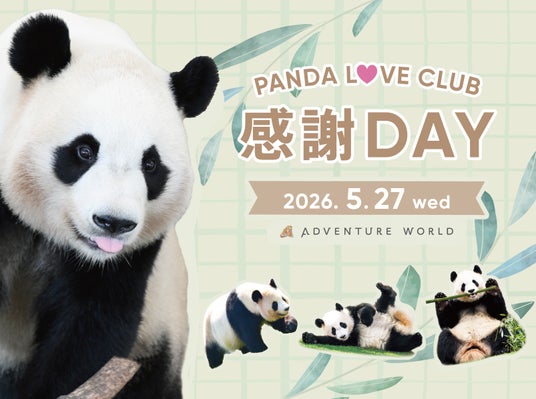 アドベンチャーワールド(和歌山県白浜町)では、4頭のジャイアントパンダが中国へと旅立ってからまもなく1年を迎える節目に合わせ、2026年5月27日(水・休園日)、パークの一部を特別に開放する「PANDA LOVE CLUB 感謝DAY」を開催いたします。