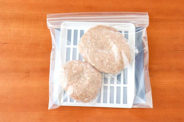 いつも焼いてから冷凍していたハンバーグも、トレーにのせればそのまま冷凍できるように。