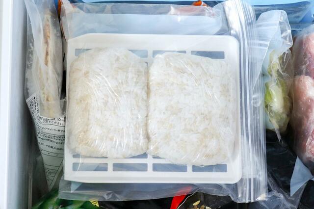 たったこれだけで、冷凍庫の上の方にごはんをのせても、形を崩さずに冷凍できるようになりました。