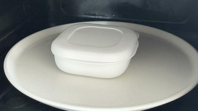 食べるときは、フタをしたまま電子レンジで加熱します。