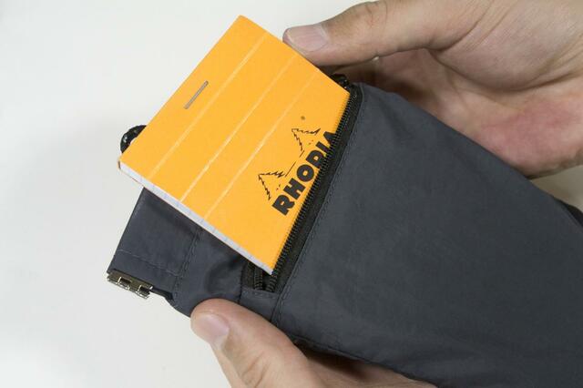 さらに、この状態からファスナーポケットにメモ帳(ブロックロディア No.11)を入れると。