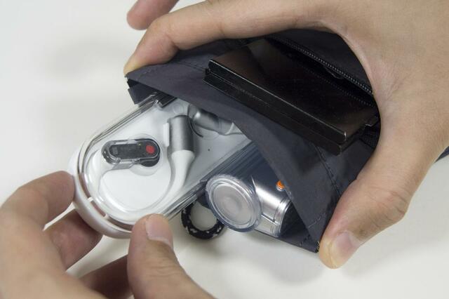 イヤホン、モバイルバッテリー、SDカードケースを入れてみると。