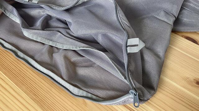 ほかの洗濯物に引っかからないようにファスナーのガードもついています。