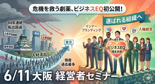 この未曾有の危機を突破するため、ブランディングの雄、株式会社イマジナ(本社:東京都千代田区、代表取締役:関野吉記)は、2026年6月11日に大阪・ブリーゼプラザにて「インナーブランディングによる組織変革セミナー」を無料で開催する。賃上げ競争が限界を迎え、従業員の退職がそのまま倒産に直結する「従業員退職型倒産」が急増する中、3,000社以上の支援実績を持つ同社は、英ケンブリッジ大学との提携による科学的診断ツール『OBPI』や、離職リスクを半減させる「理念浸透」の具体的手法を公開。関西の経営者に対し、コストとしての賃上げではなく、価値を創る「人的資本投資」への転換を強力に支援する。