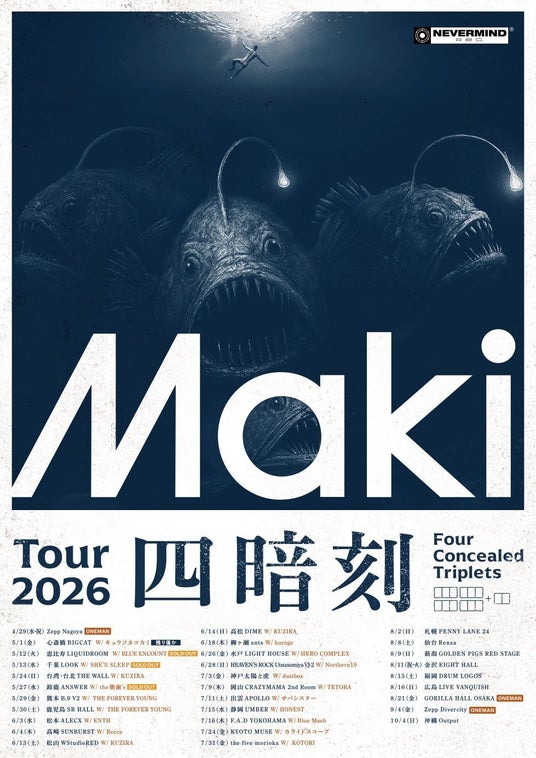 同作を携え、4月29日のZepp Nagoyaを皮切りに10月4日沖縄 Outputまで全国31公演となる過去最大規模の全国ツアー『Maki Tour 2026「四暗刻」』を開催。