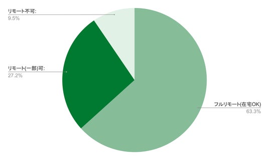 SOKUDANに掲載されているJava案件は、フルリモートが63.3%と約6割を占め、一部リモート可を含めると90.5%がリモート対応可能です。
