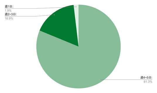 SOKUDANに掲載されているJava案件は、週4~5日が81.3%と圧倒的にフルタイム稼働が中心です。週2~3日は16.9%にとどまり、柔軟性は限定的といえます。