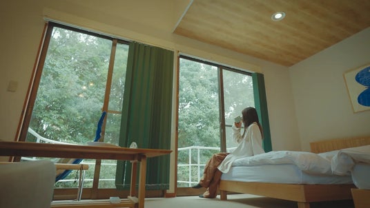 1.懐か新しいエモが詰まった / コンセプトルーム「青と緑」伊豆の「海」と施設を包み込む豊かな「森」をテーマに、家具やスタイリングで世界観を統一し滞在そのものが体験になる空間を演出。伊豆の自然と調和する落ち着いた色彩と素材感のなかで、ゆったりとした時間を過ごせます。