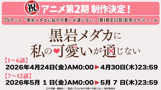 TVアニメ『黒岩メダカに私の可愛いが通じない』 (第1期全12話) 配信スケジュール