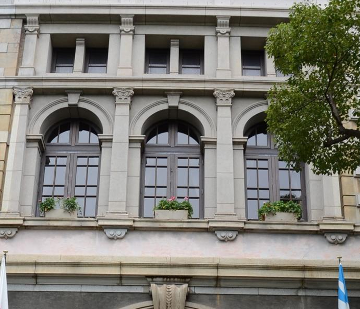 <南玄関正面>ルネサンス様式 半円アーチ型の窓