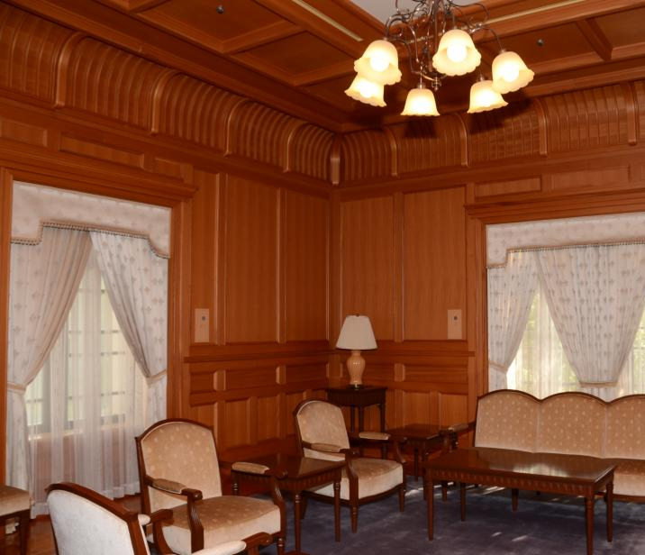 <貴賓室>天井・壁・全てケヤキむく板で作成